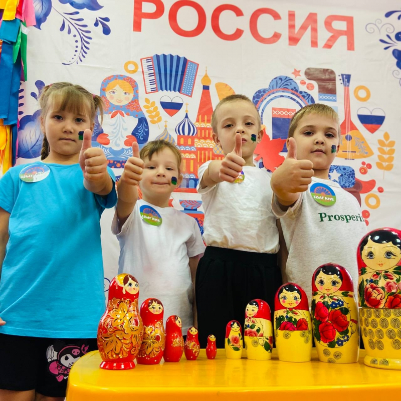 В досуге приняли участие подготовительная группа «Радуга». Началось развлечения с «Веселой разминки», после чего дети разделились на четыре национальные команды: цыгане, татары, буряты и русские. Ребята приняли участие в эстафетах «Пронеси Российский флаг», «Матрешка», «Герб России», «Мы едины и непобедимы». Завершилось мероприятие игрой «Ручеек» и вручением детям сладких подарков. На спортивном развлечении каждый участник смог проявить свою силу, ловкость быстроту и смекалку. И по итогам соревнований победила дружба.